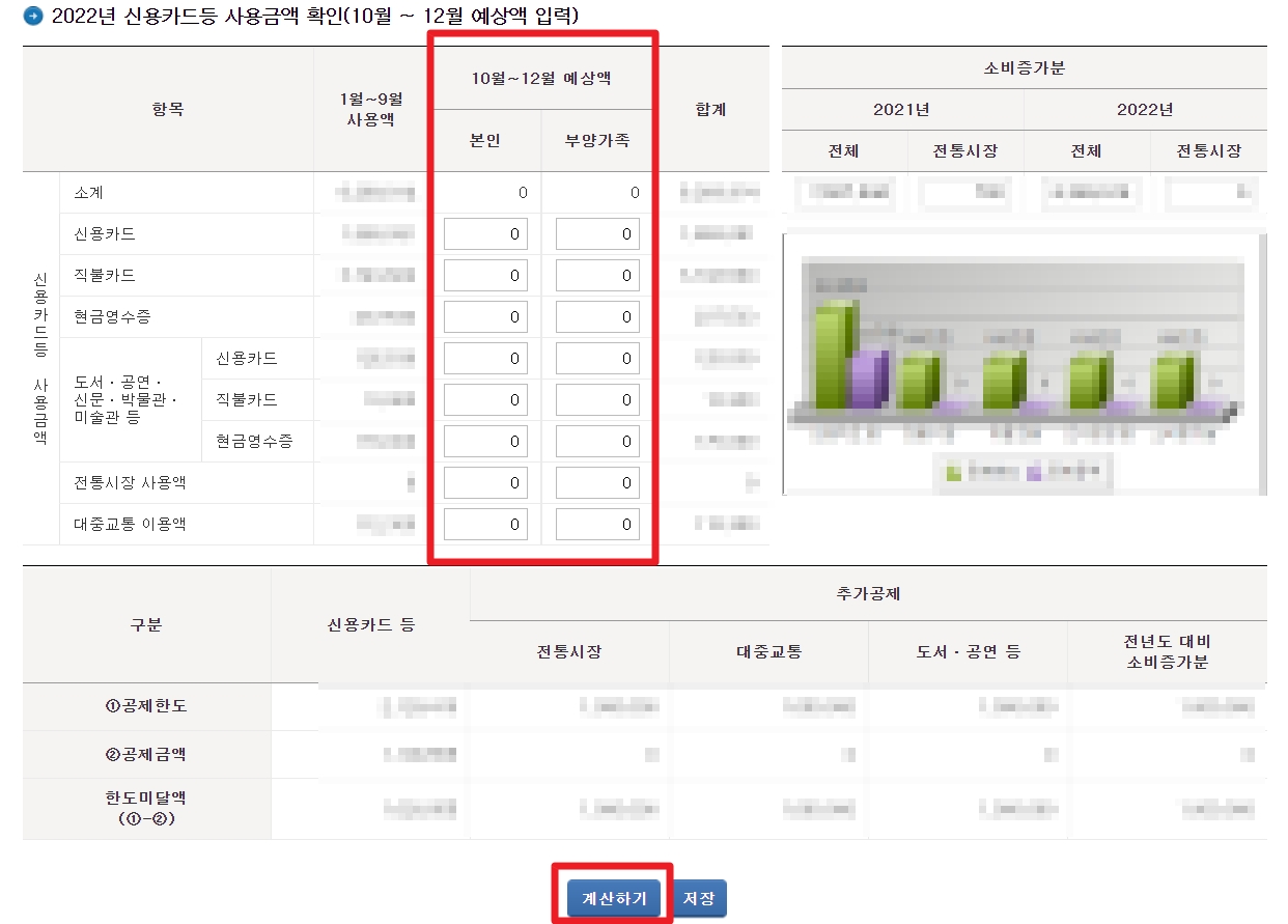 5. 조회되지 않는 10월~12월 예상액을 직접 입력해준 다음 저장 -> 계산하기를 클릭하고 계산되었다는 창이 뜨면 Step.02로 넘어갑니다.